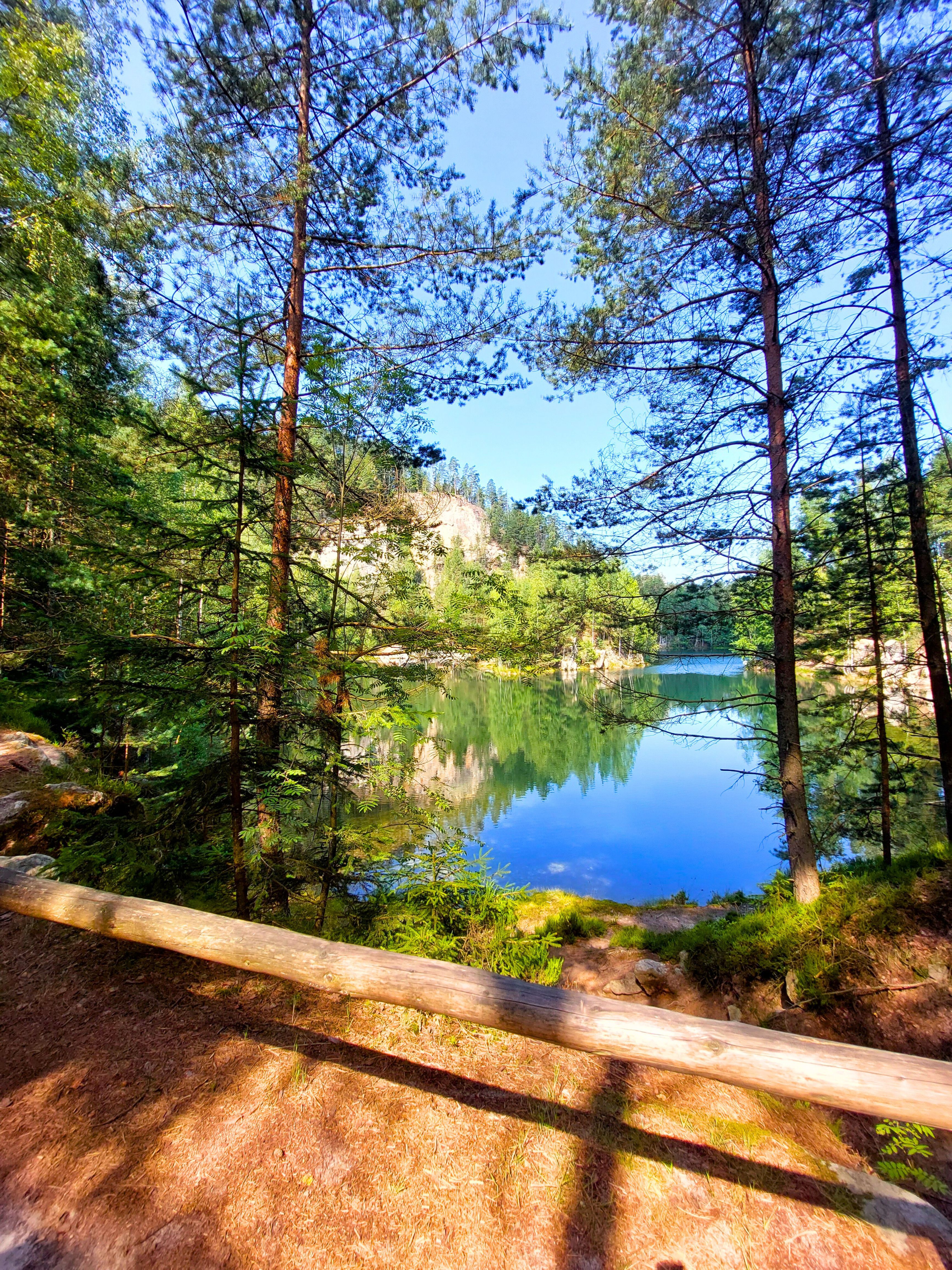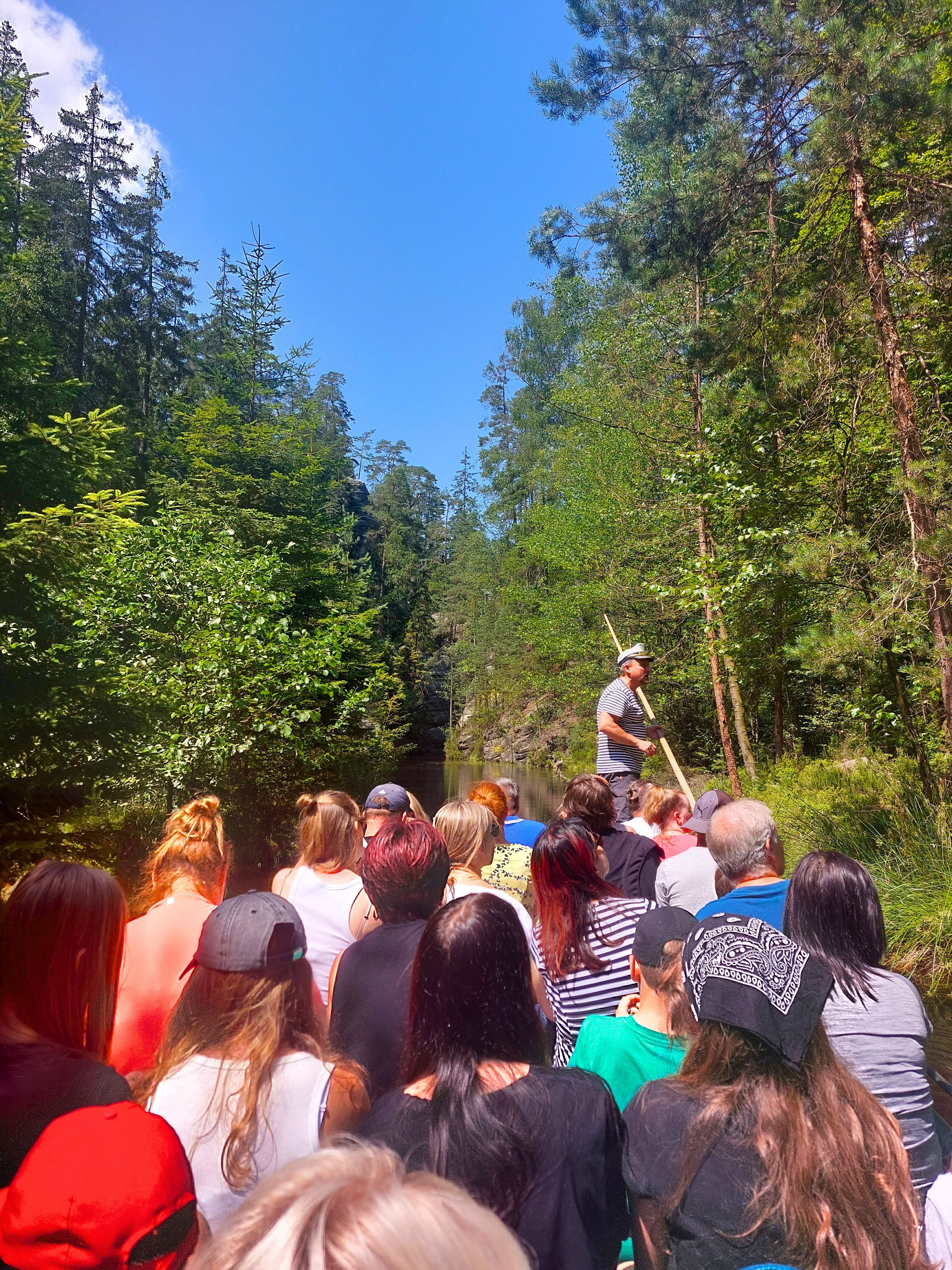 Za opłatą 50 koron od osoby można przepłynąć się tratwą po jednej z części jeziora. Tratwa mieści ok. 40 osób i prowadzona jest przez pana, który strojem przypomina gondoliera. Opowiada on podczas rejsu co widzimy na trasie oraz ogólnie o tym miejscu, lecz niestety tylko w języku czeskim. Mi trafił się bardzo wyluzowany "gondolier". Mimo iż na samym początku oznajmił, że jest zakaz kołysania się łódką, to zatrzymał nas w pewnym momencie i gdy tratwa stała całkowicie nieruchomo, to nagle powiedział byśmy rozbujali ją na wszystkie strony i w taki oto sposób po chwili kołysaliśmy się to w prawo, to w lewo.