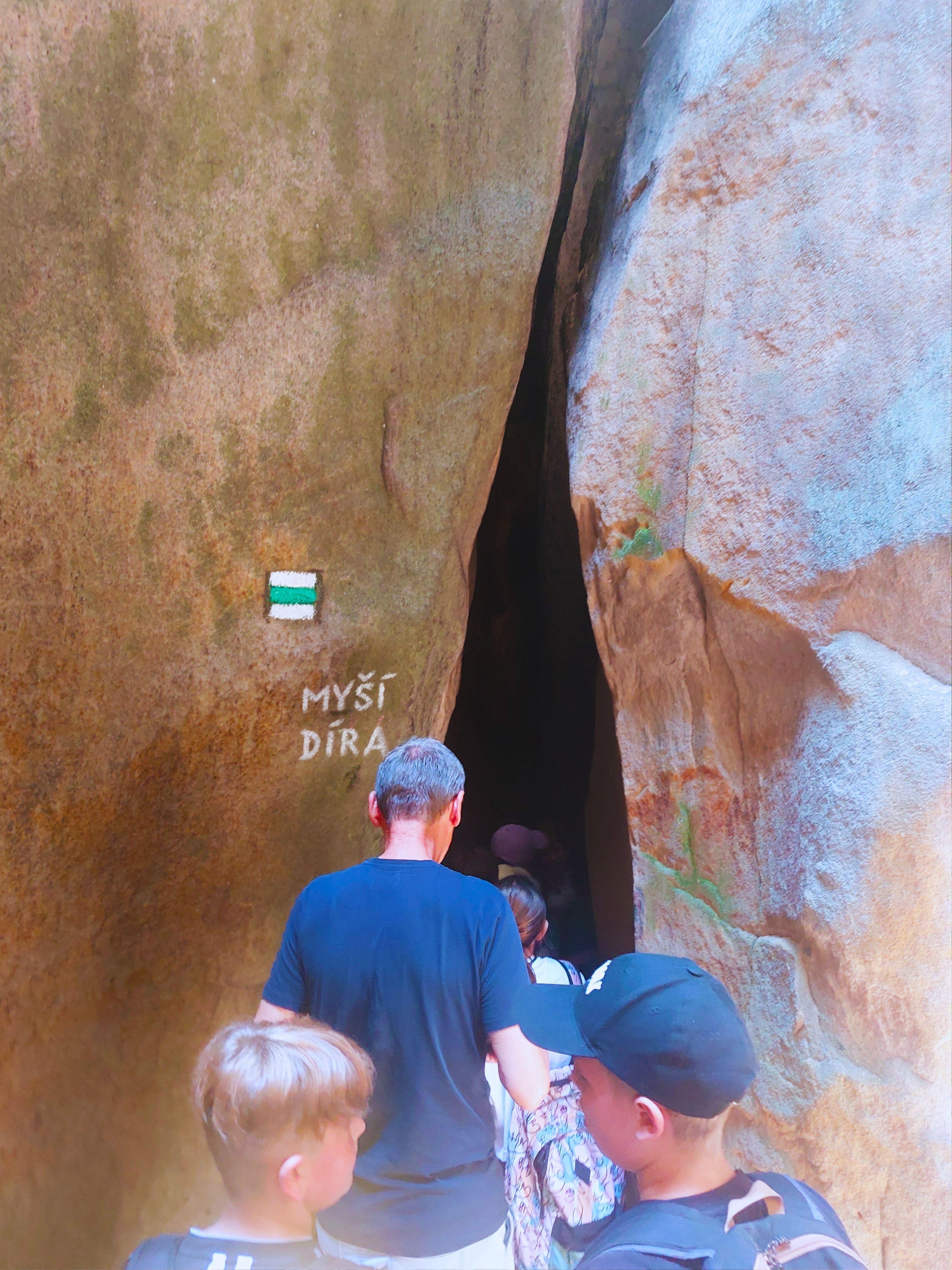 Gdy kończyłam wycieczkę w Skalnym Mieście ostatnim punktem na mojej trasie było przejście przez wąską na 50 cm uliczkę. Wchodzi się pomiędzy skalną szczelinę, w której odczuwalny jest wyraźny chłód i idzie się tam przez niedługi odcinek. Wybierając się tam z większym plecakiem należy liczyć się z tym, że może on charatać po ścianach.