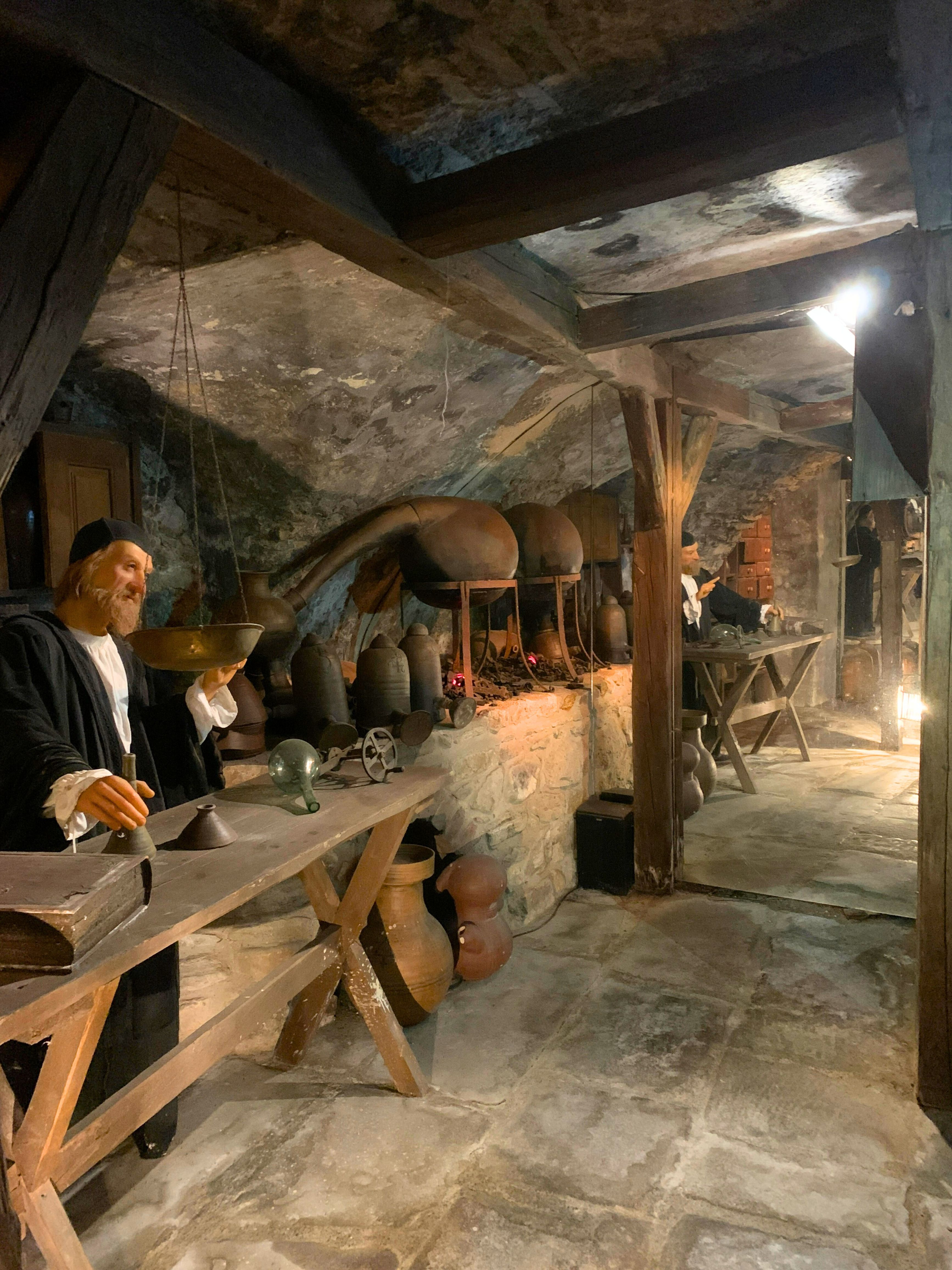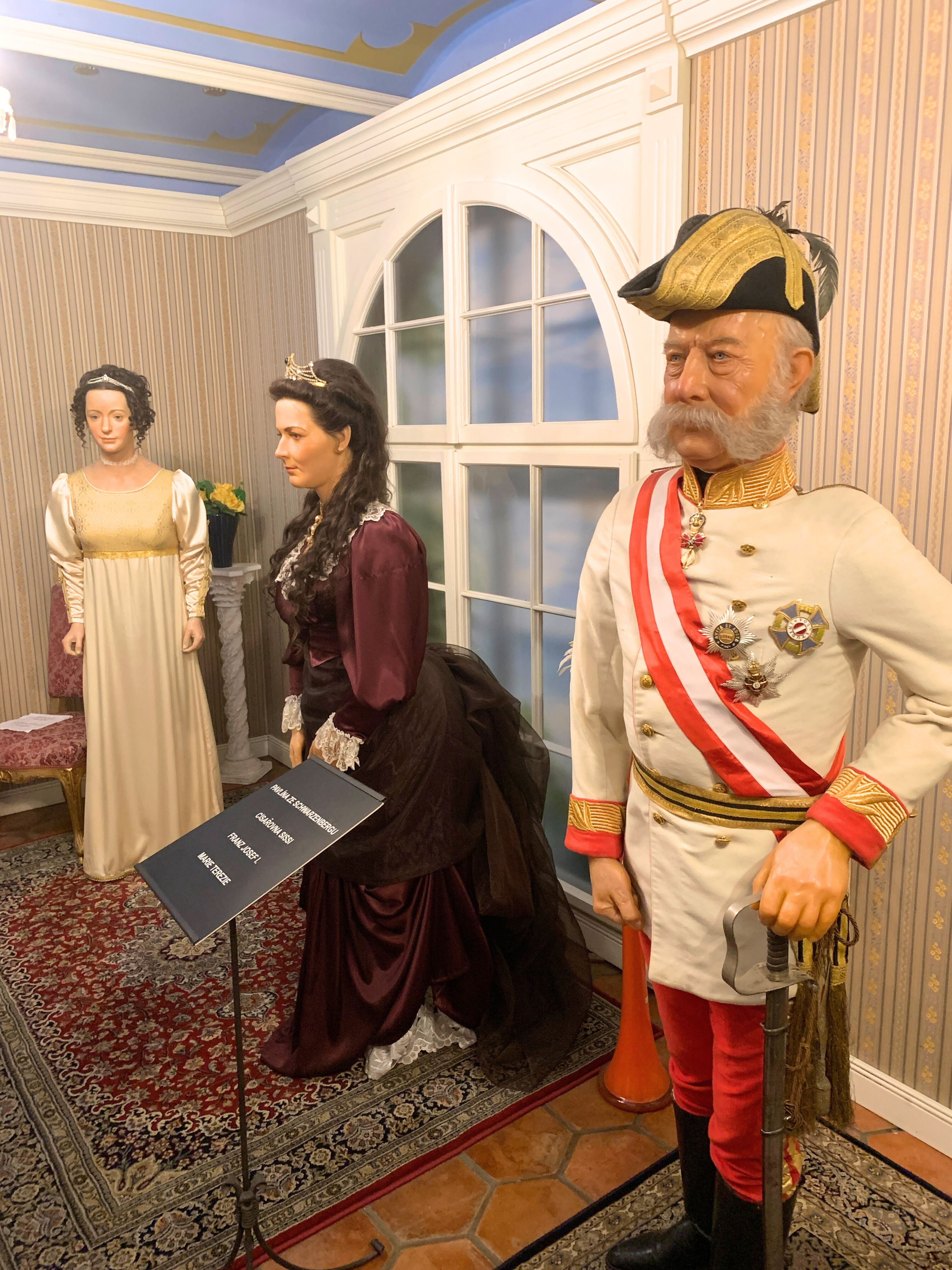 Spacerując dalej, kilkadziesiąt metrów od rynku natrafiamy na budynek w kolorze ceglasto czerwonym. To Muzeum Figur Woskowych - atrakcja stworzona typowo pod turystów. Za niewielką kwotę można kupić bilet rodzinny. Na samym początku przenosimy się w świat trochę mroczny. Przechodzi się podziemiami, w których czają się złoczyńcy za kratami, torturowani są ludzie oraz tym podobne (dla mniejszych może nawet i straszne) wystawy. Następnie kierujemy się do sali, w której zadaniem postaci woskowych jest przedstawienie jak wyglądało życie w tamtych czasach, w tamtej okolicy. Dalej mieszczą się już „prawdziwe” postacie historyczne takie jak cesarzowa Sisi. Na samiuteńkim końcu znajdziemy figury osób ze świata pop kultury czy polityki.