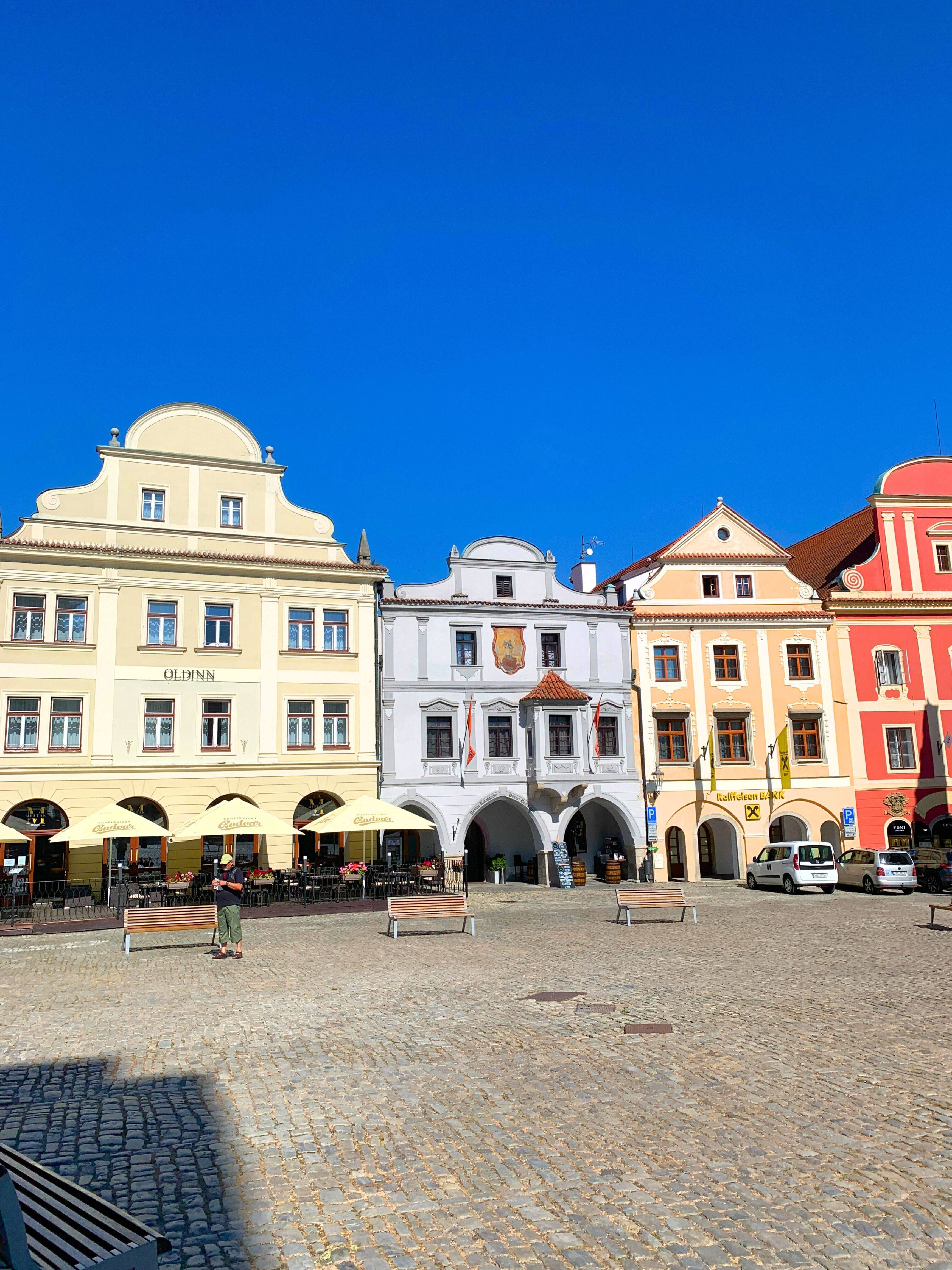 Do starego rynku miasta, który nazywa się Náměstí Svornosti dochodzimy wąskimi uliczkami miasta, przy których znajdują się sklepiki z pamiątkami czy restauracje. Sam rynek jest wolny od ruchu samochodowego więc można się spokojnie po nim przemieszczać podziwiając kolorowe gotyckie i renesansowe kamienice. Jak w wielu czeskich miastach również tutaj znajduje się kolumna morowa, czyli konstrukcja architektoniczna najczęściej w postaci słupa, na której znajduje się posąg albo posągi świętych. Ta w tym mieście została ufundowana przez Marię Ernestę (kobietę z rodu Schwarzenbergów) jako wotum dziękczynne za zakończenie epidemii dżumy w latach 1680-1682. Wokół kolumny w XIX wieku wybudowano sześciokątną fontannę.