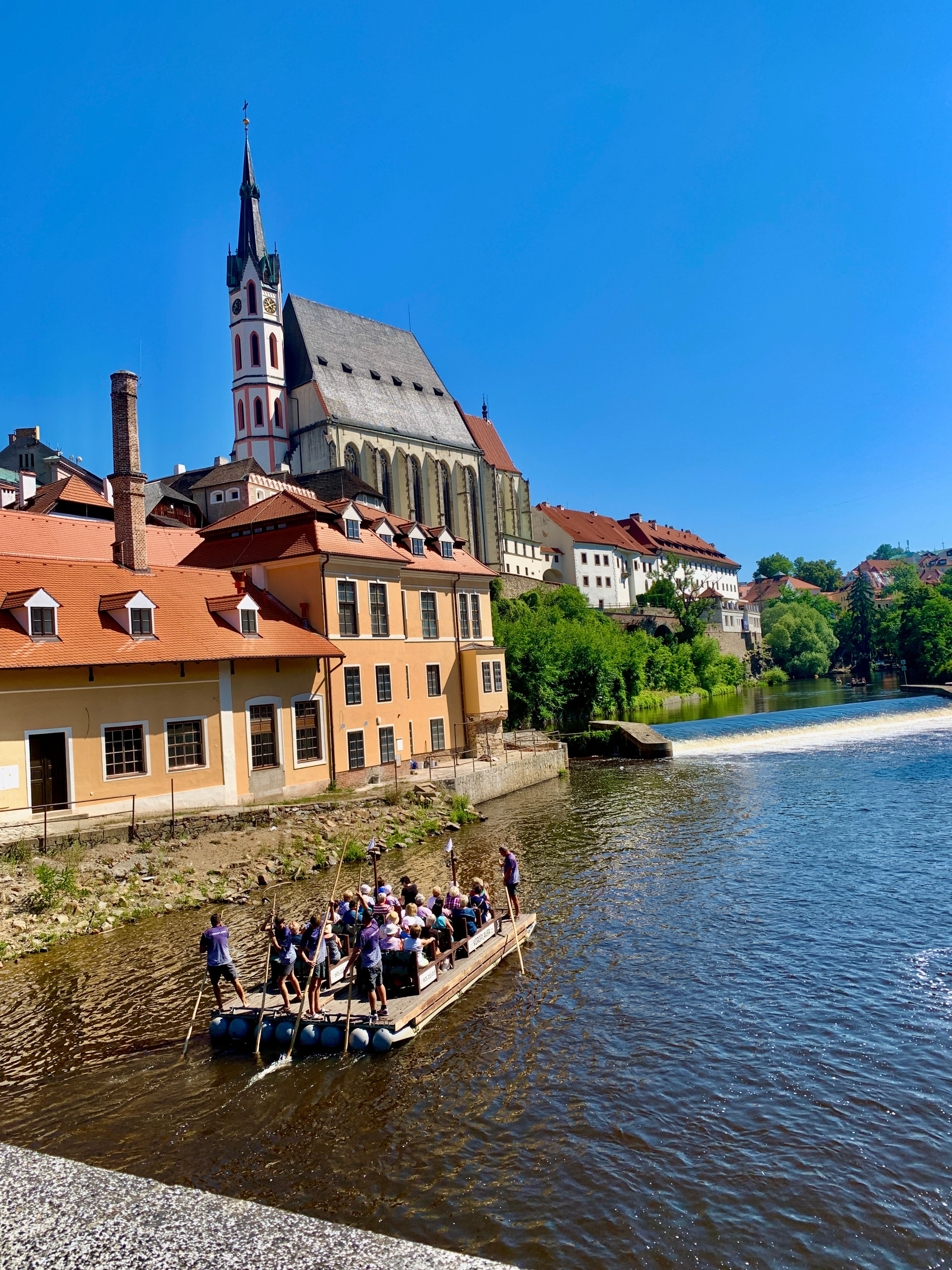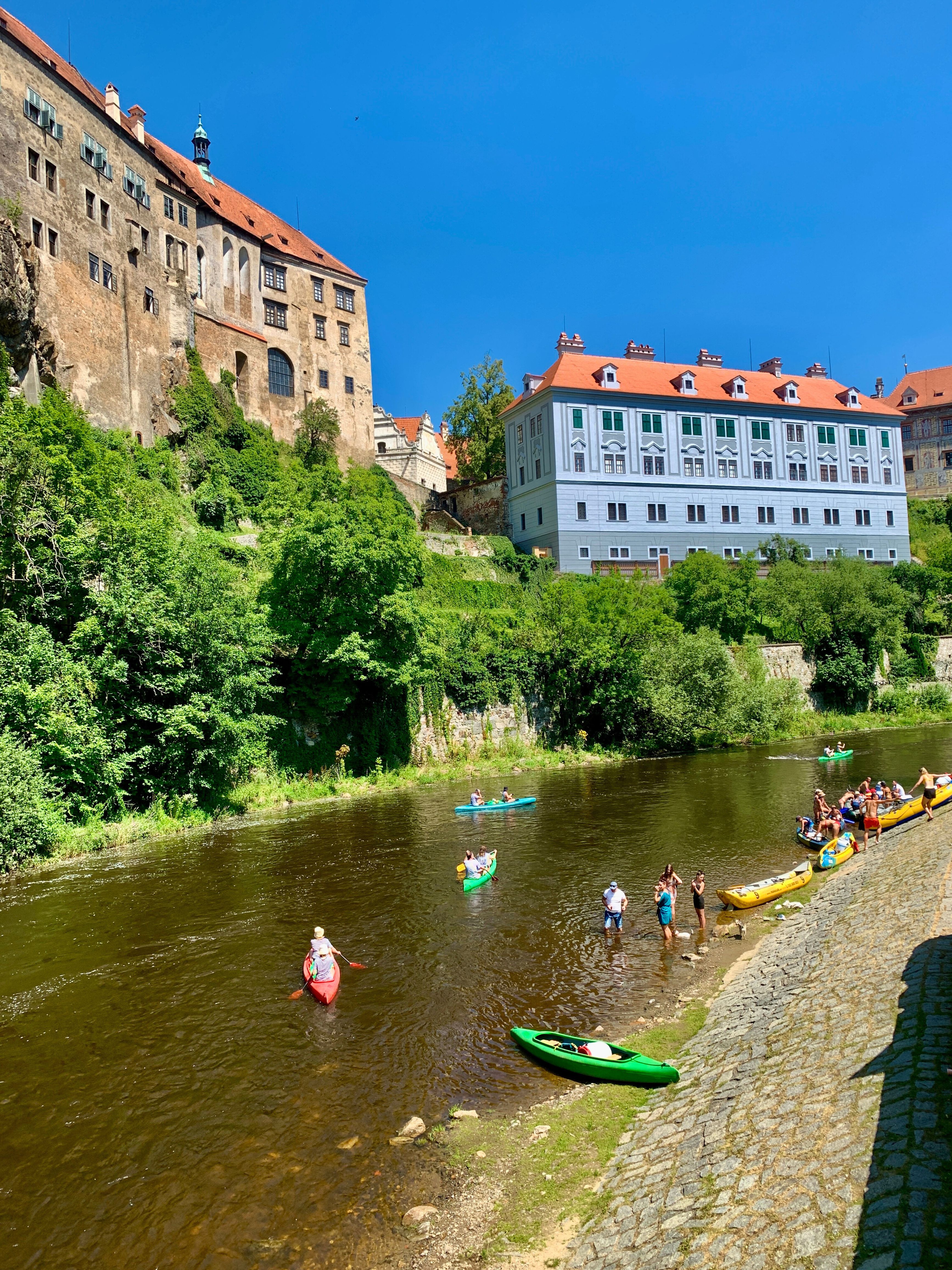 Wełtawa to najdłuższa rzeka Czech licząca 435 kilometrów. Jest ona dopływem Łaby, choć niektórzy twierdzą, że powinno być odwrotnie. Rzeka w Czeskim Krumlowie tworzy meandry, a dodatkowe spady (które przyspieszają jej bieg) mają za zadanie utrudnić przemieszczanie się po niej. Otóż organizowane są spływy Wełtawą. Można popływać: kajakami, pontonami, łodziami czy tratwą. Dzięki temu ma się okazję podziwiać miasto z innej strony. Jak mogłam zauważyć, ta atrakcja cieszy się sporą popularnością.