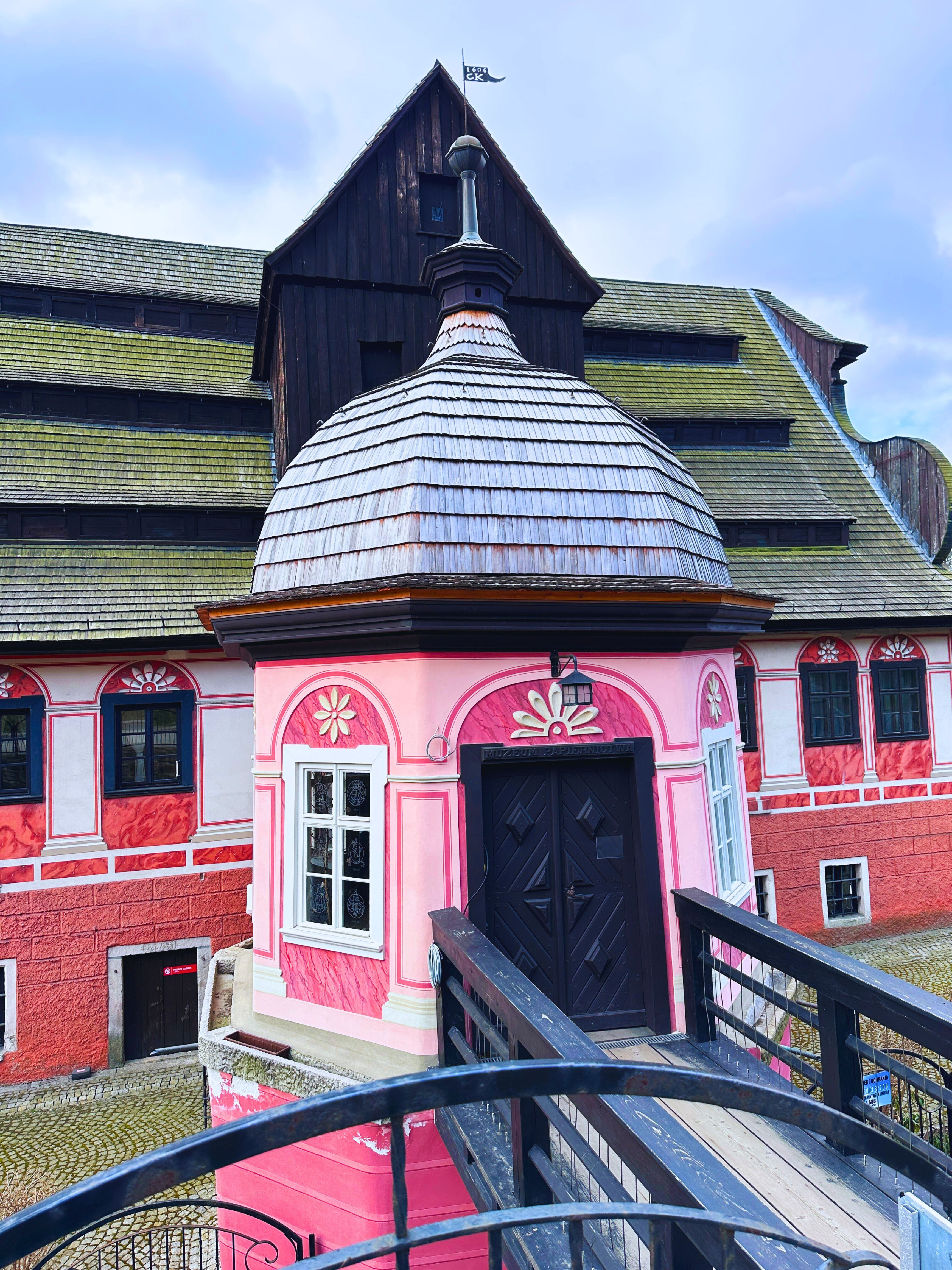 Odwiedzając pobliskie Kłodzko warto zajrzeć do Duszników. Muzeum Papiernictwa znajduje się w dosyć wyróżniającym się budynku, którego nie trudno przeoczyć przejeżdżając obok. Mieści się ono w domu z różowobiałymi zdobieniami, dużym, spadzistym, drewnianym dachem, młynem, suszarnią i (chyba najbardziej rzucającym się w oczy) pawilonem, który połączony jest mostkiem z głównym budynkiem. Pawilonem tym też wchodzimy i już jest to (przynajmniej dla mnie było) pierwsze miejsce do robienia zdjęć.