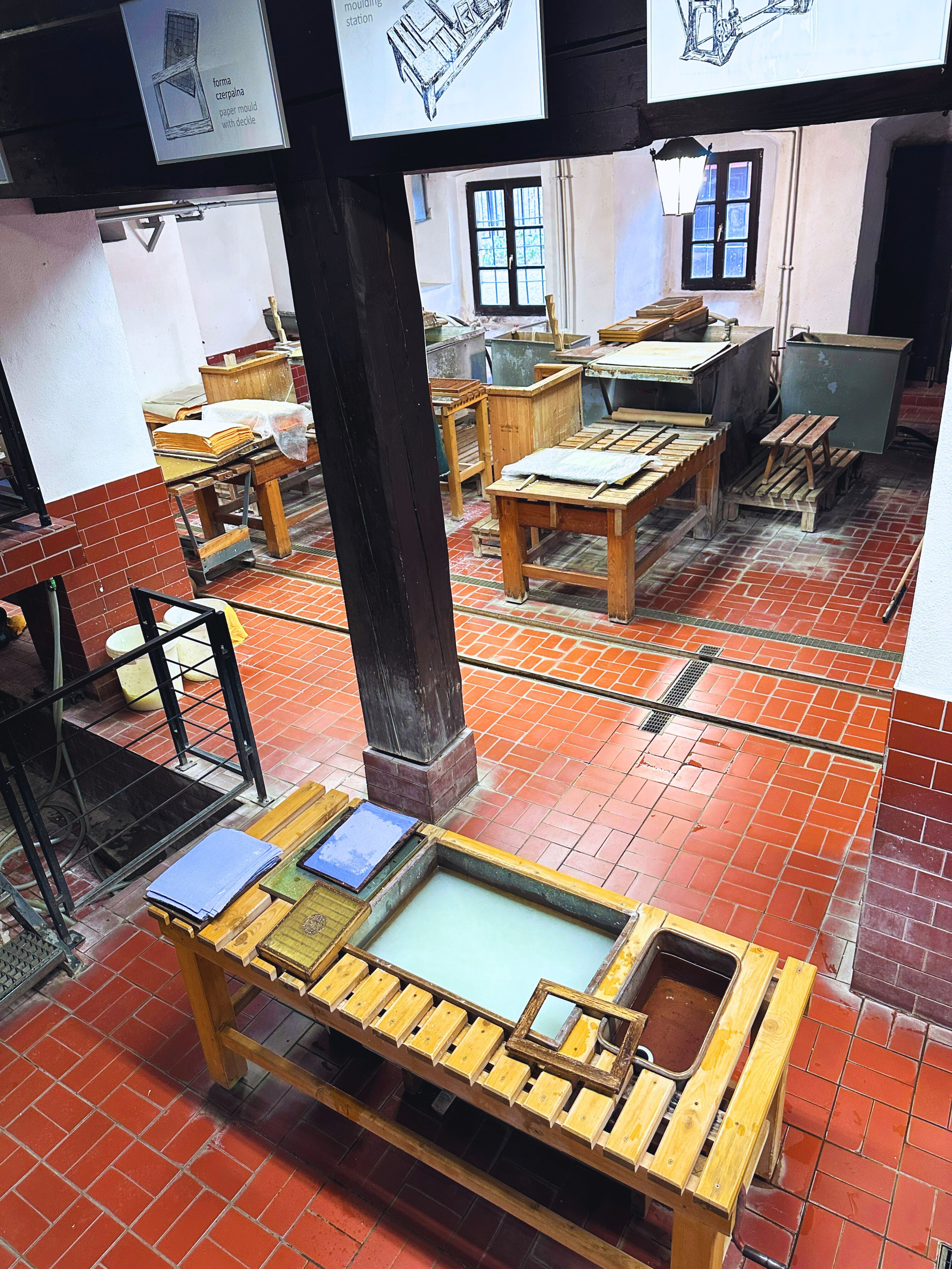 Schodząc schodami na dół, trafiamy do najstarszego pomieszczenia, w którym od ponad czterech stuleci nieprzerwanie produkowany jest papier (nawet teraz, lecz już nie w takich ilościach jak kiedyś). Teraz znajdują się tam warsztaty w tworzenia papieru, które stanowią ogromną atrakcję dla dzieci. Jest ona jednak dodatkowo płatna - 19 zł.