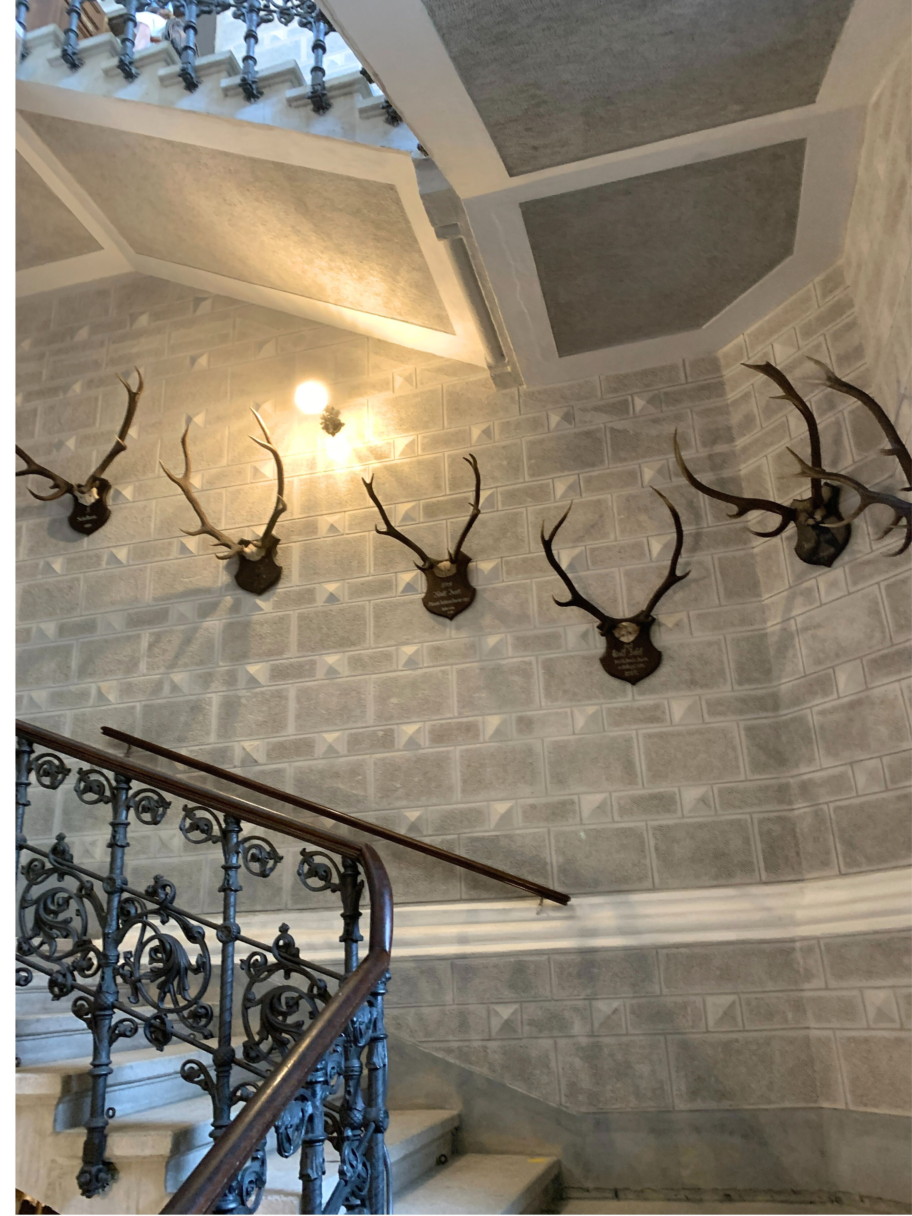 Pałac ma udostępnione do zwiedzania 140 sal i 11 wież. Do sal zaliczamy np. kuchnię, dawne sypialnie, pokoje gościnne, a to wszystko ze starymi meblami i innymi częściami wyposażenia. Ja wybrałam się na wieżę widokową z której roztaczał się ładny widok na rzekę, miasto i dziedziniec. Darmową opcją jest zwiedzanie parku i ogrodów zamkowych, które zaprojektowane są w stylu angielskim. Styl angielski charakteryzuje się odejściem od sztucznych, geometrycznych, nienaturalnych kształtów roślin. Ma on za zadanie ukazać prawdziwe naturalne piękno i udowodnić, że może być ono naprawdę ciekawe.